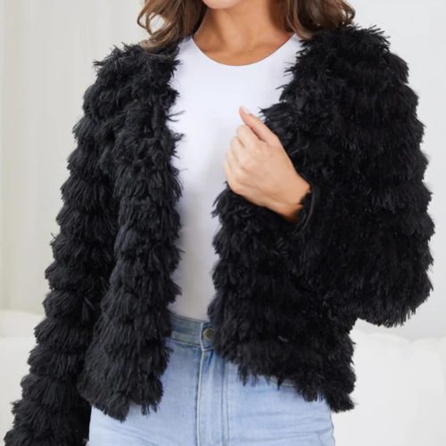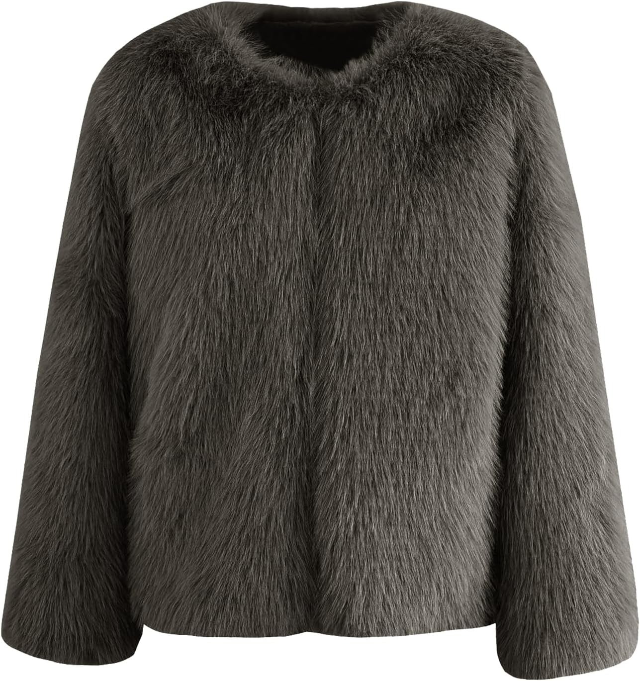 Faux Fur Jacket Women Long Sleeve Open Front Cropped Cardigan Warm Winter Shaggy Fluffy Short Fur Coat